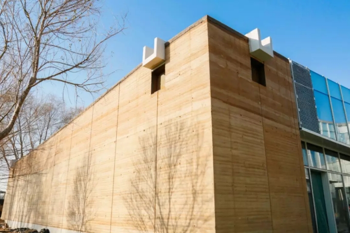 生活體驗(yàn)館作為世園會(huì)距城市最近的展館,成為銜接城市與田園的重要節(jié)點(diǎn)。石籠墻、鏤空磚墻、夯土墻、木板墻、云紋玻璃幕墻的外墻裝飾與城市和山水格局相呼應(yīng)。7個(gè)場(chǎng)館組成了一幅典型的山水田園畫(huà)卷。